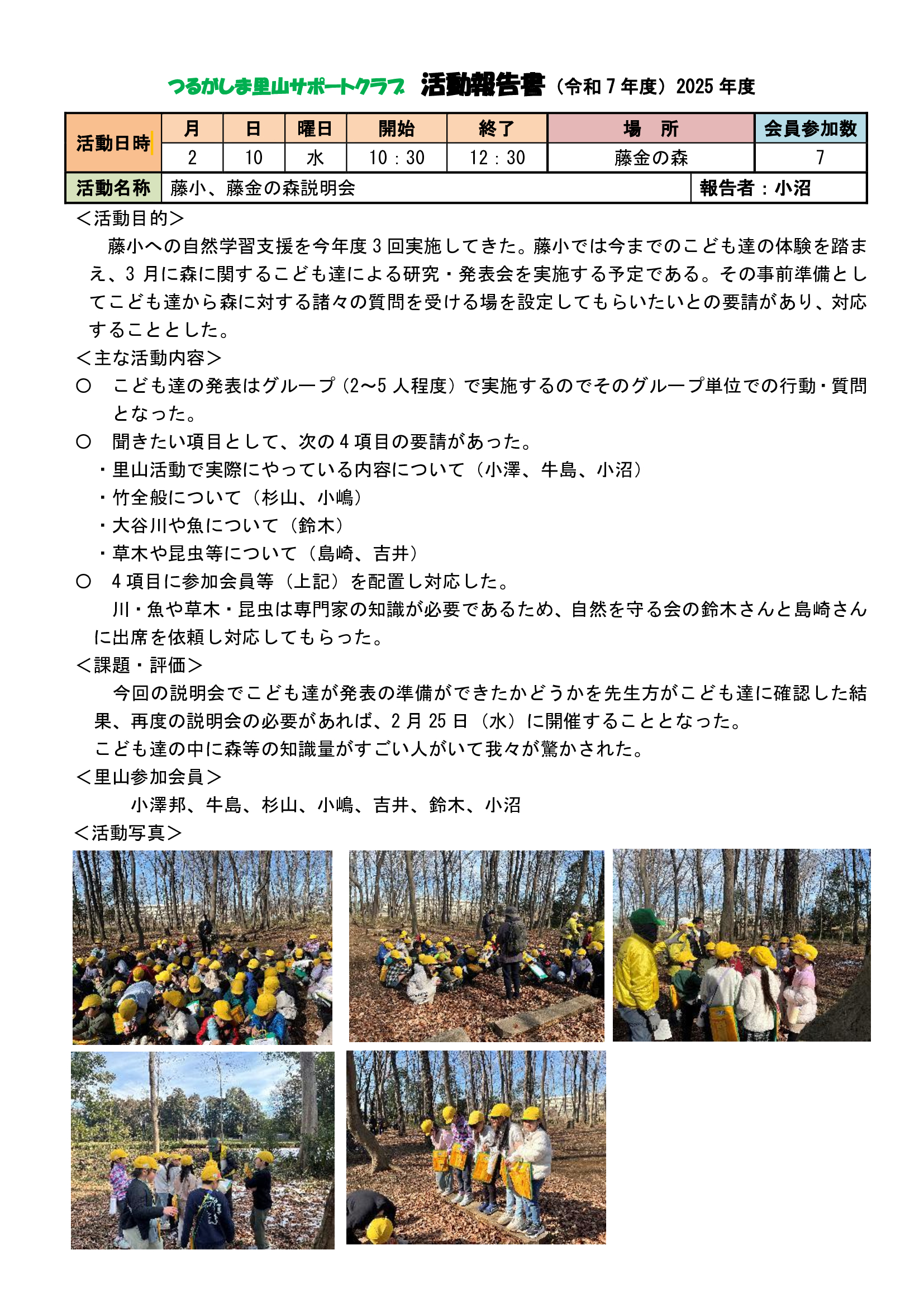 | 報告12/6 | 杉下小・野外学習発表会 |