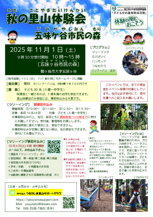 | 11/1(土)8:30 | 五味ケ谷森 ・里山体験会 |