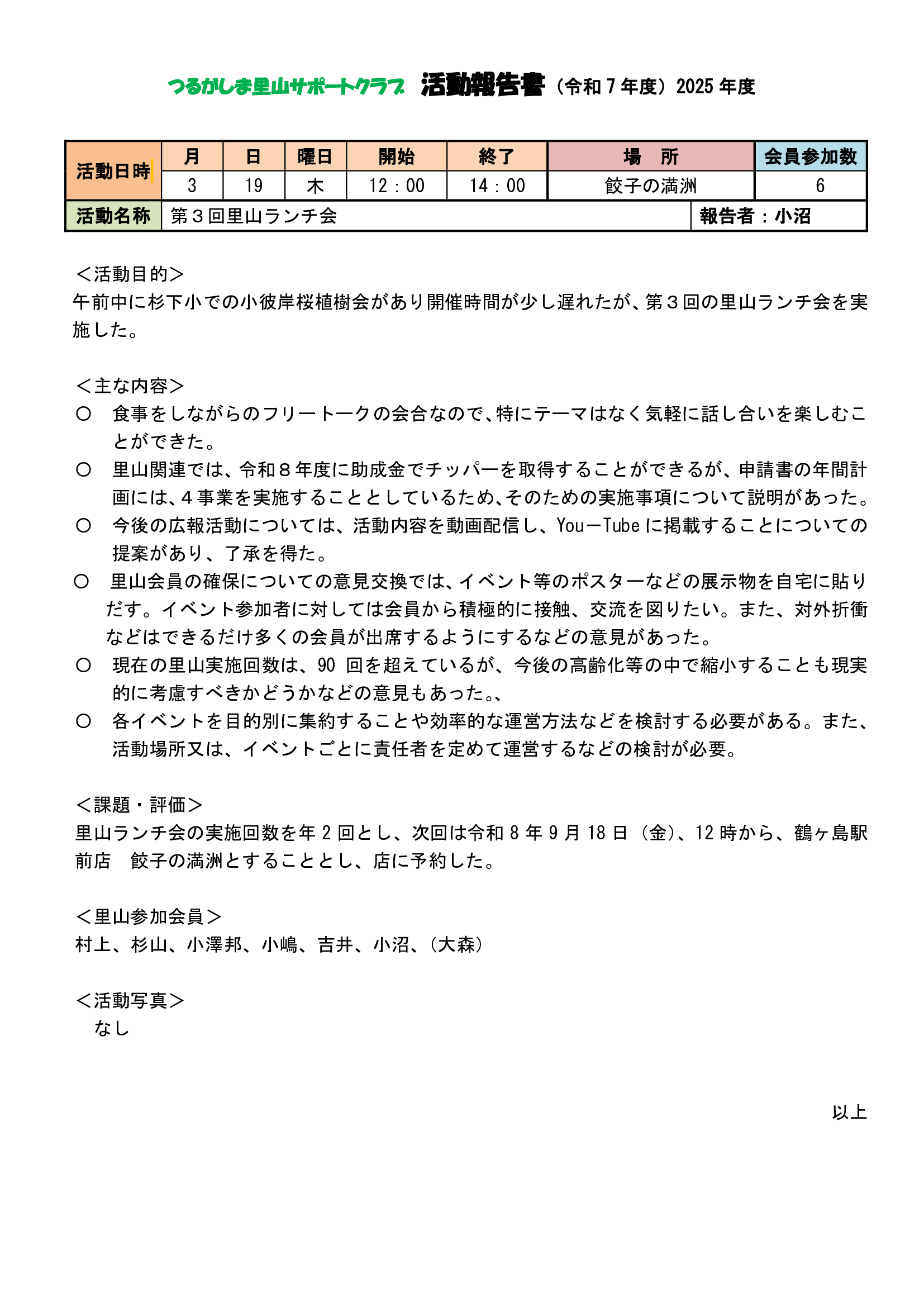 | 3/19 里山ランチ会 |