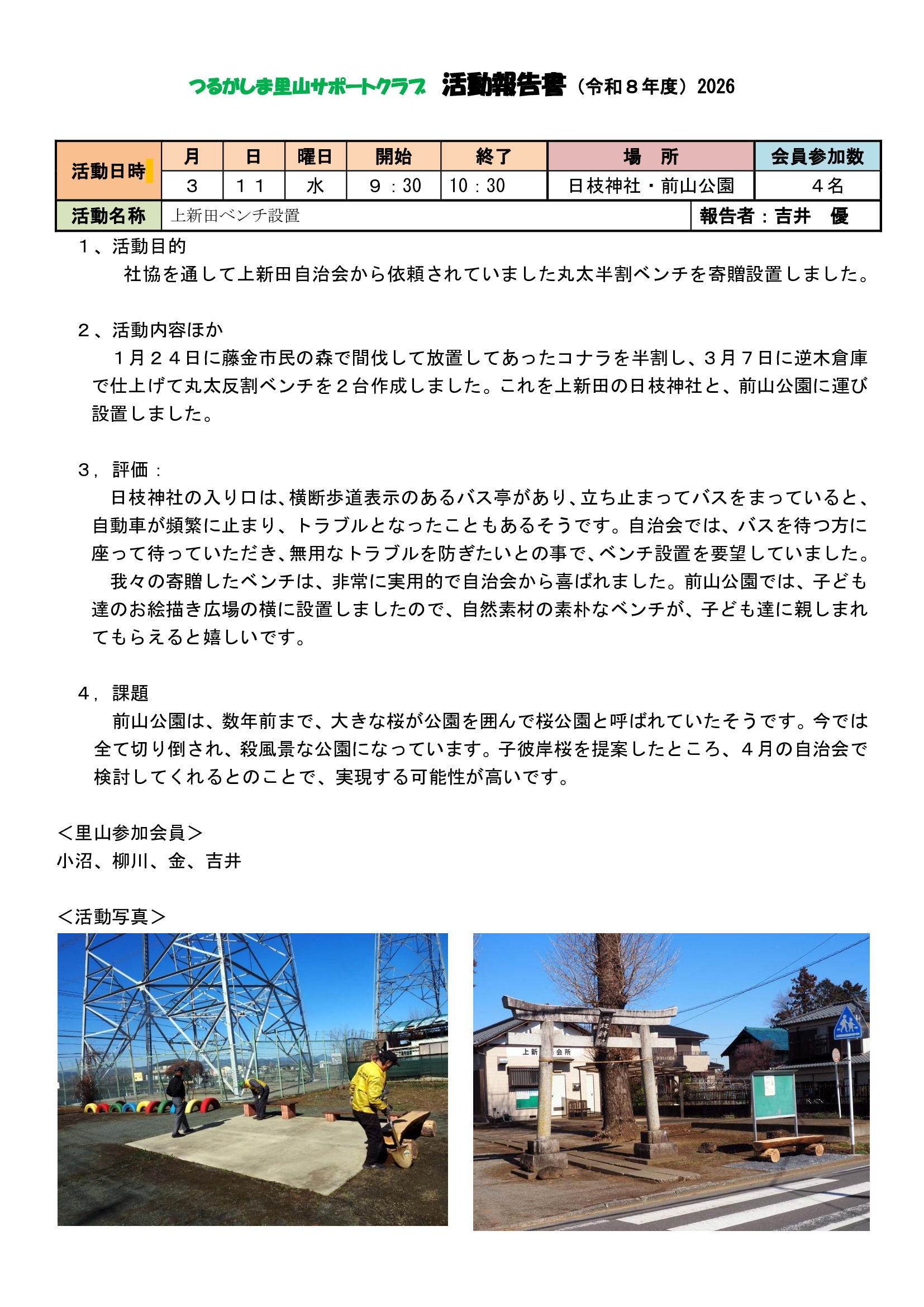 | 報告12/10 | 五味ケ谷森で門松の材料加工 |